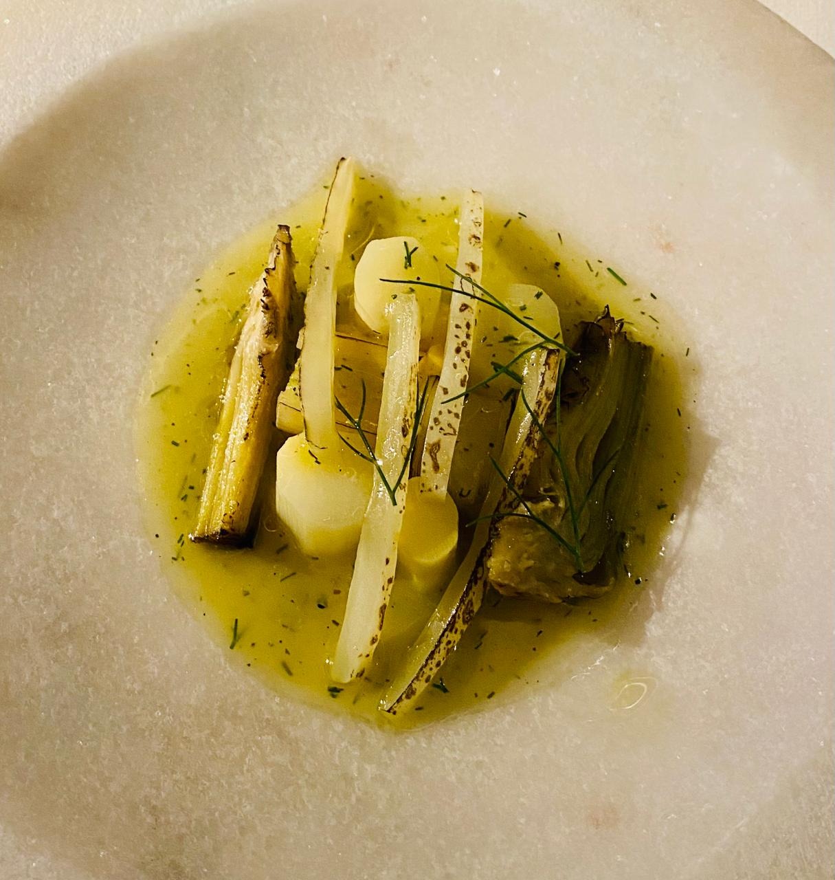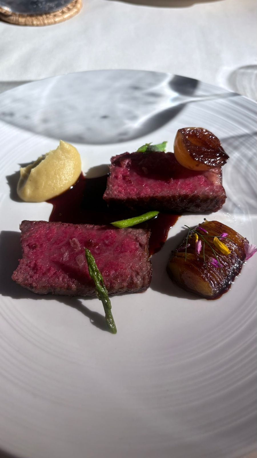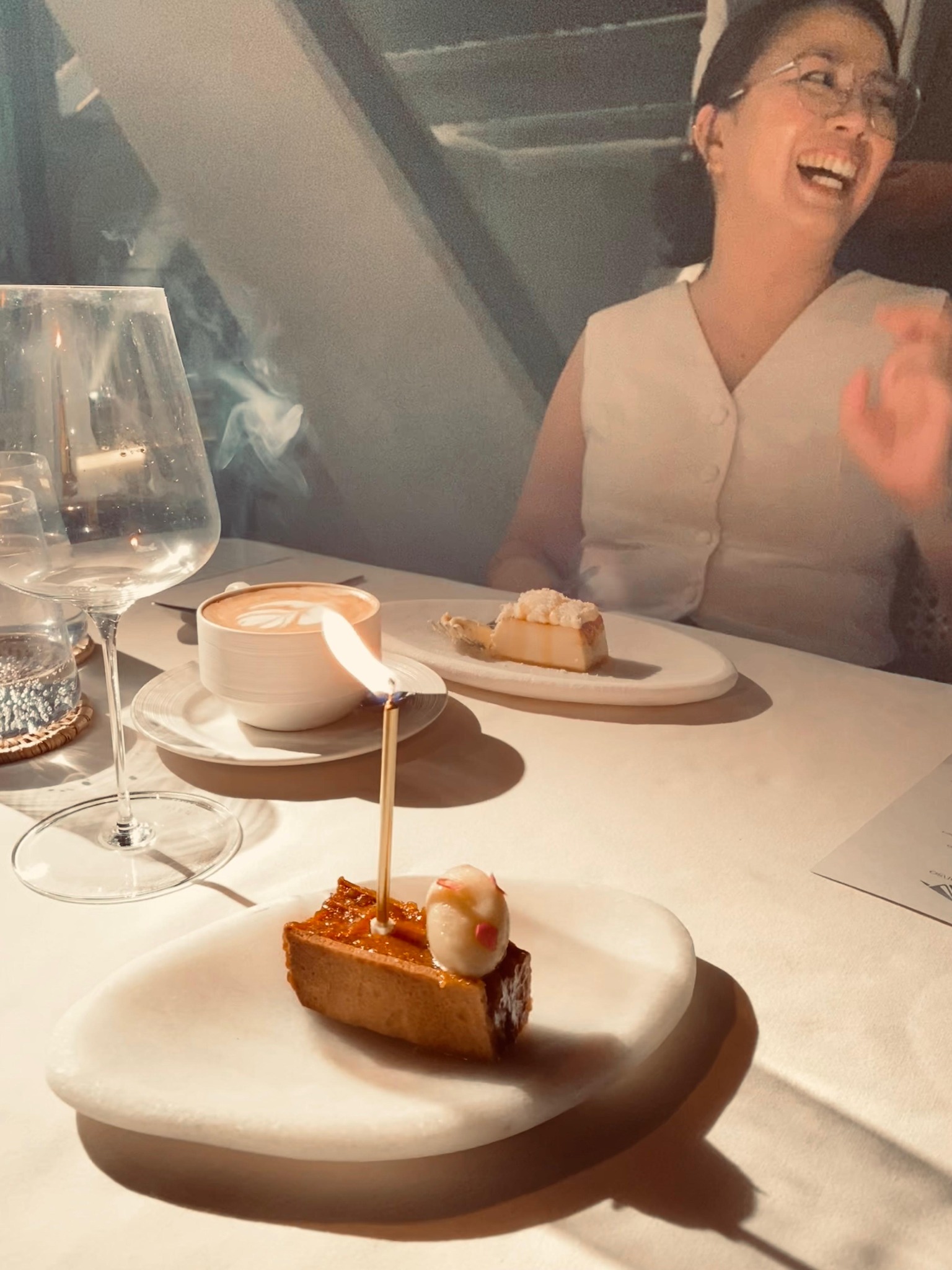 As conversation swirled around me, I found myself observing. Andre, who never eats vegetables, actually tried the Verdura de Temporada, the vegetable course. He took a few bites. For him, that was monumental. Vince and Steve fell into an animated discussion about shared interests. Deeda, an expert hostess, seemed to know exactly how to keep everyone engaged, offering topics that pulled us all in. I caught small gestures throughout the night: Vince briefly kissing Apple's shoulder, Steve's comforting pat on Deeda's back, Loren opening up about navigating a new life as a married woman.