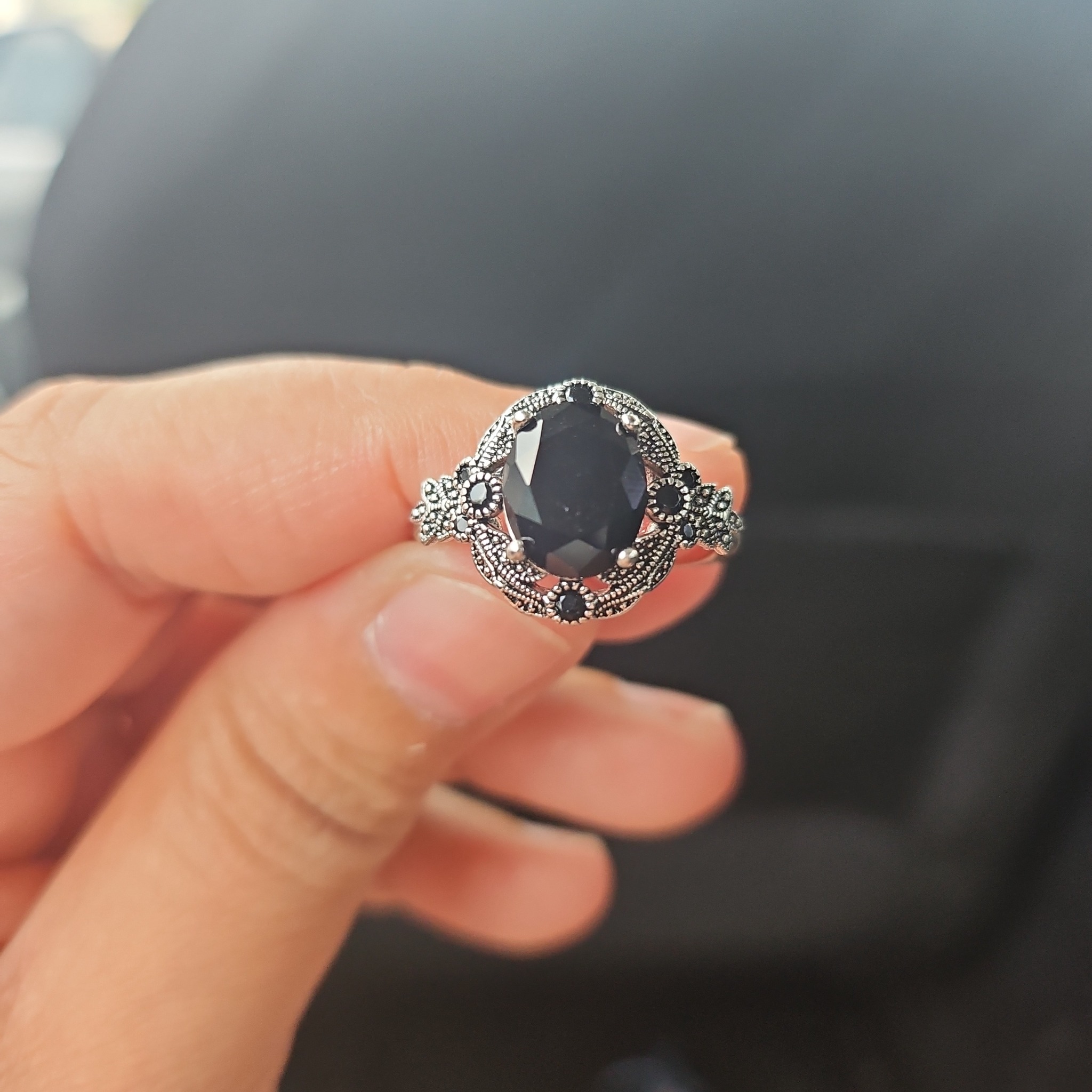 As I was wrapping up, moving through the last few stalls, I stopped at a vendor selling trinkets — rings, pendants, small things arranged carefully on the table. The vendor sat behind her wares in coloured glasses, unhurried, letting people look. And I looked, and found a ring: Victorian-inspired, gothic, black onyx set in silver. I held it and thought, this is not my style. Then I bought it.